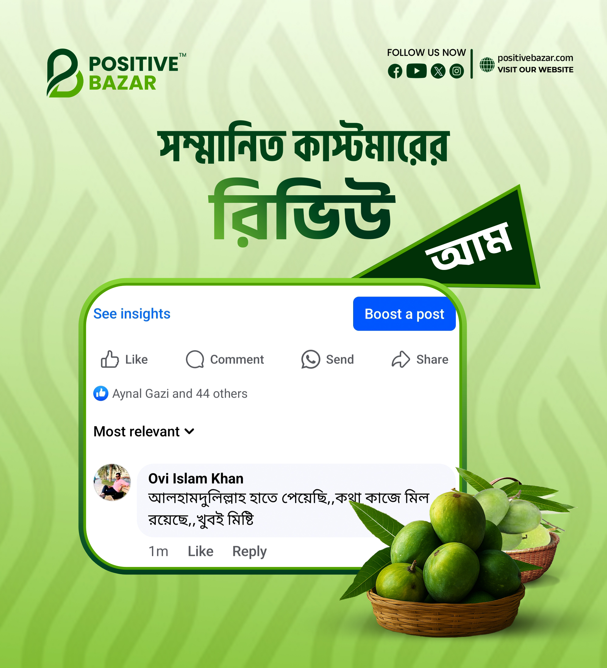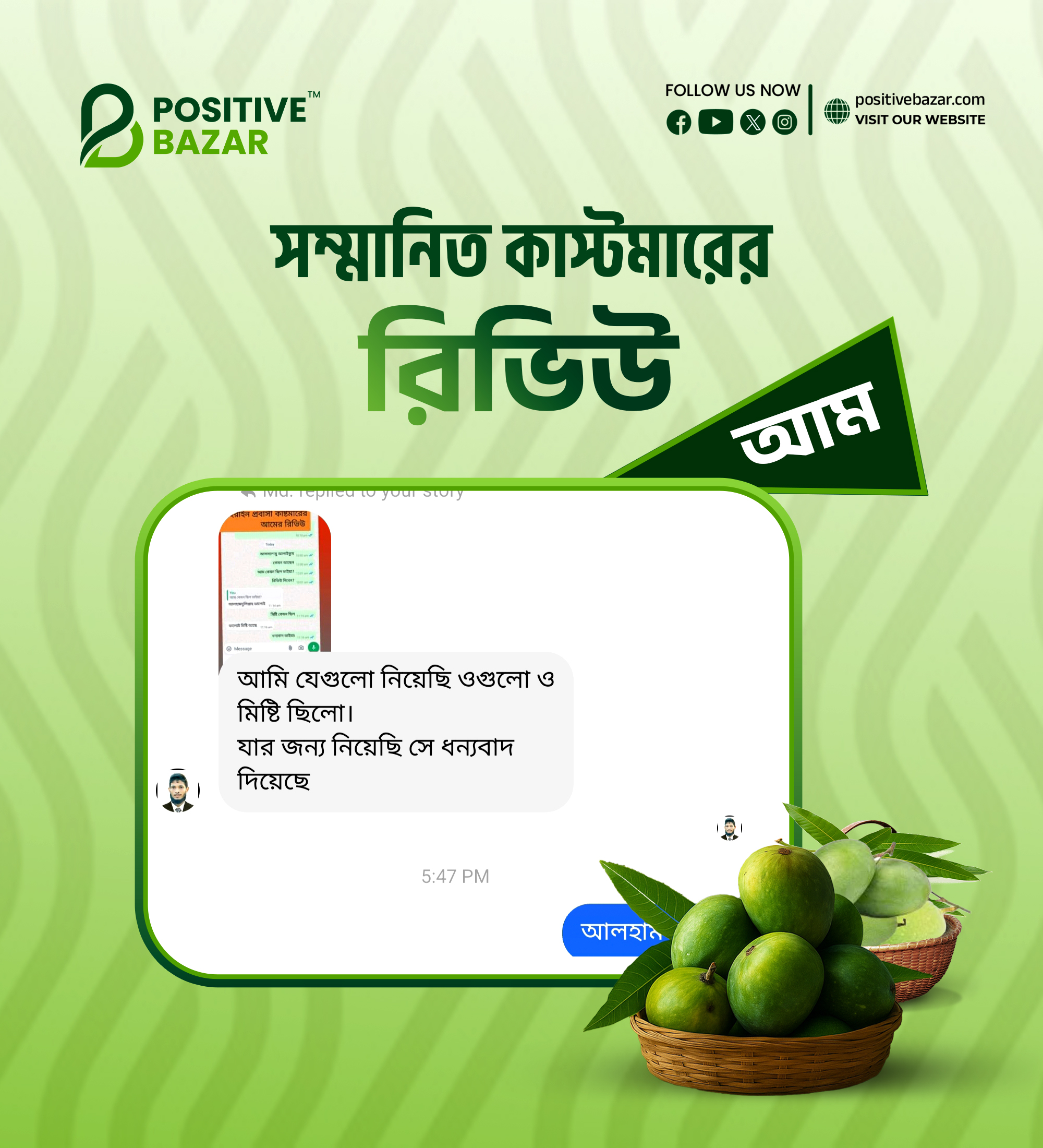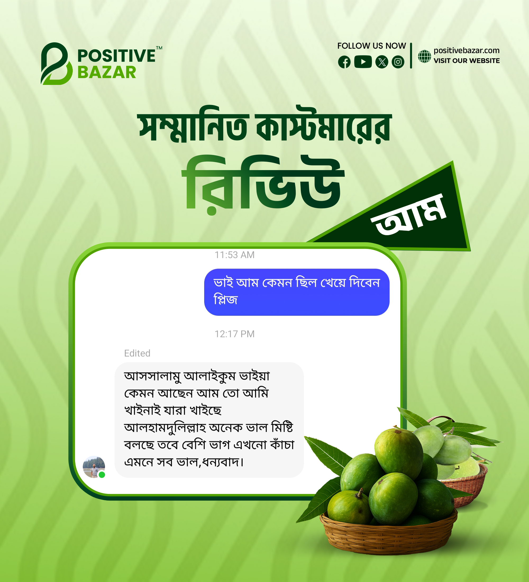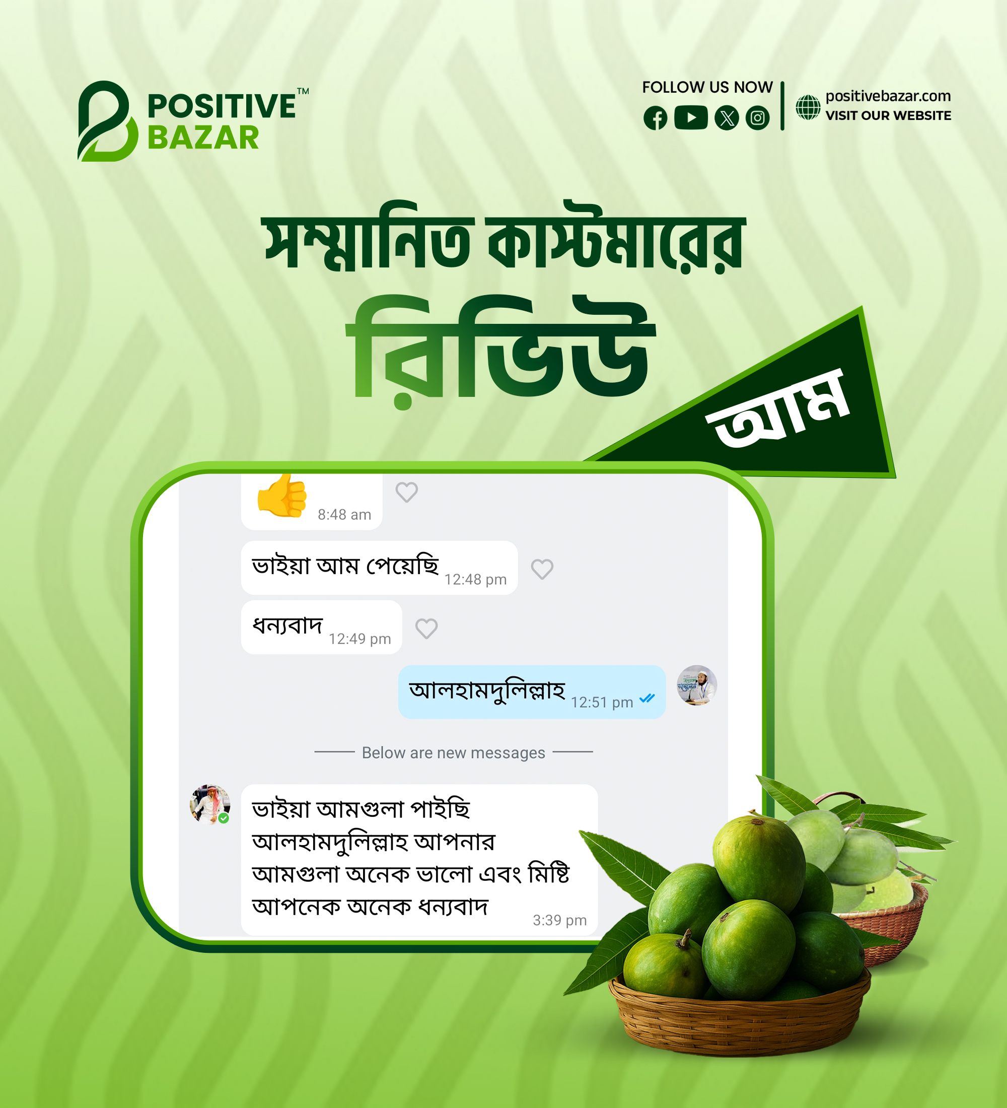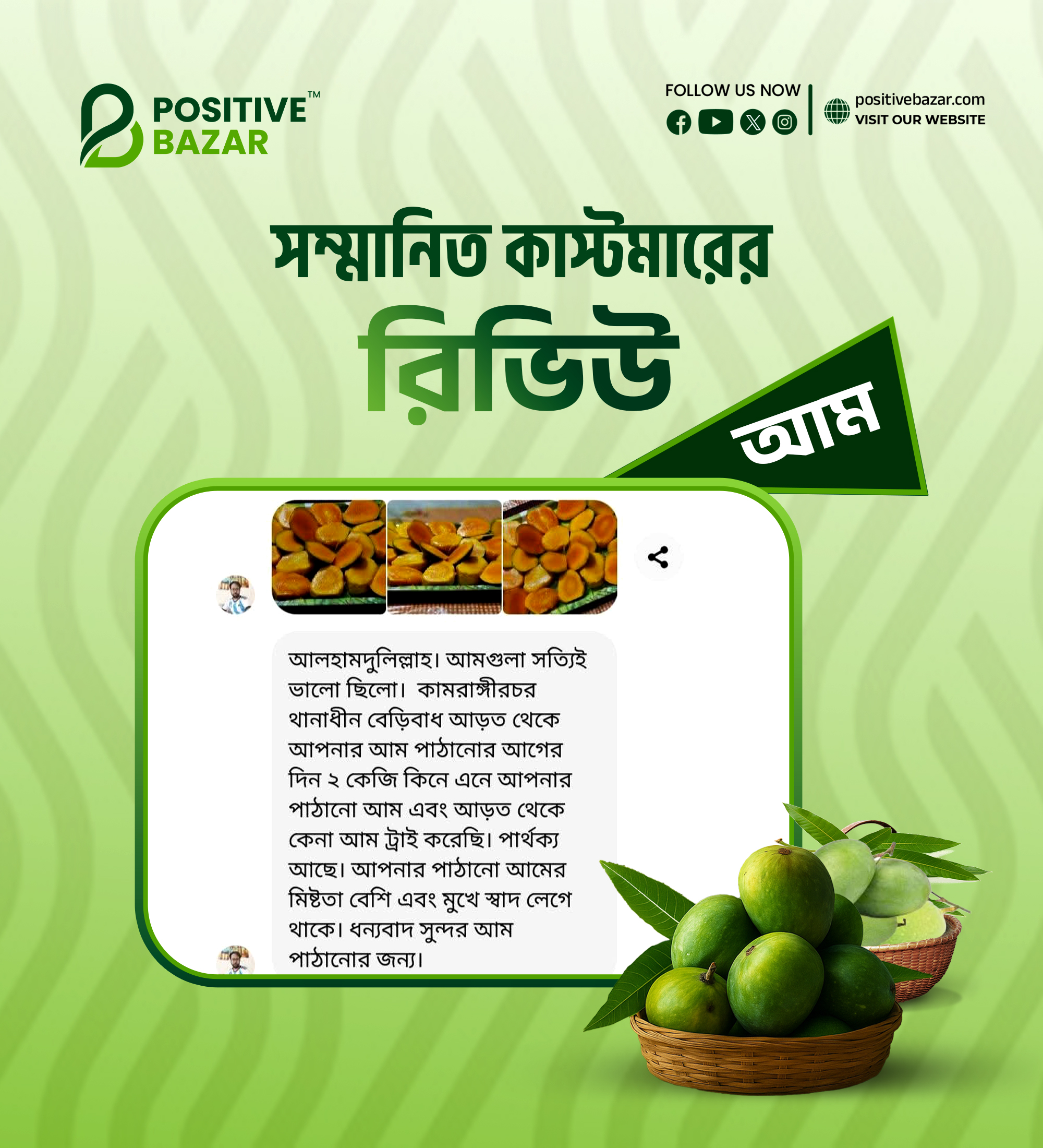নিশ্চিন্তে অর্ডার করুন পজিটিভ বাজারে হিমসাগর আম। সম্পূর্ণ ক্যামিক্যাল মুক্ত আম বাগান থেকে পেড়ে প্লাস্টিকের ক্যারেটে সেই আম মোড়কীকরণ করে সরাসরি গ্রাহকের নির্দিষ্ট ঠিকানায় পৌঁছে দেওয়া হয়।